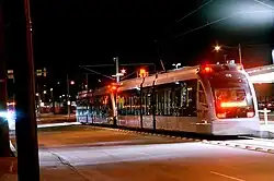 The 6.7-mile (10.8 km), 10-station Purple Line, and seven stations of the 3.2-mile (5.1 km), 9-station Green Line opened on May 23, 2015.[122] The final two stations of the Green Line opened on January 11, 2017.[123] A storage yard/inspection facility is located off of Harrisburg and Clifton.
