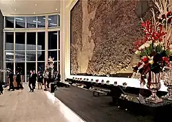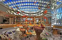 The resort's public spaces feature a permanent collection of art inspired by the Washington metropolitan area and developed in collaboration with Prince George's County Arts and Humanities Council, Atlantic Arts, and RareCulture.[11][12] Artists, sculptors, and photographers featured in the collection include Alice Aycock, Charles Hinman, Chul Hyun Ahn, John Safer, Liao Yibai, Margaret Boozer, Martha Jackson Jarvis, Sam Gilliam, and Terry O'Neill.[11][12] The west entrance to the facility features a 25-by-15-foot (7.6 m × 4.6 m) iron archway composed of "found objects" such as farming tools, children's toys, wheels and axes designed by Bob Dylan.[13]