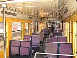 To accommodate the heavier passenger traffic on the RER A, the MI 84 had about 15% fewer seats, allowing more standing passengers. MI 84 trains are also equipped with anti-laceration seats which are more durable, but less comfortable than the thick leatherette seats of the MI 79.[3]