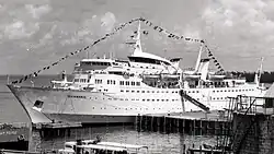 In 1979, she was sold to Amar Line, a joint venture between the Monaco-based Vlasov Group and the Saudi entrepreneur Gaith Pharaon. She was renamed Saudi Moon I and entered service between Jeddah and Suez. In 1988, Saudi Moon I was sold to Ocean Quest International of New Orleans, and renamed Ocean Spirit, which she undertook cruises on routes to New Orleans-Cozumel-Belize-Cancun and St. Petersburg-Belize Reef-Cozumel-Roaten-Guanaja.[10] Ocean Quest International eventually chartered the Ocean Spirit to International Shipping Partners in 1990, and was renamed as the Scandinavian Song and placed into service to its subsidiary SeaEscape. SeaEscape returned the Scandinavian Song the following year to its owner so it can be used by Danish Cruise Lines for cruises from San Juan, Puerto Rico, in November.[11] In 1993, Danish Cruise Lines returned the Scandinavian Song back to SeaEscape, which began cruises-to-nowhere and weekly trips on April 16 to Freeport, Bahamas.[12]