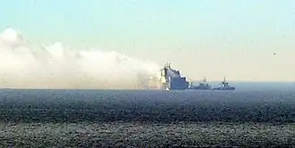 There were fears of an explosion if the fire was to reach the fuel tanks. Also, the water currents were pushing the ship towards the Croatian coast.[5] Floating barrages were placed around the ship, but no oil leaked.[7]