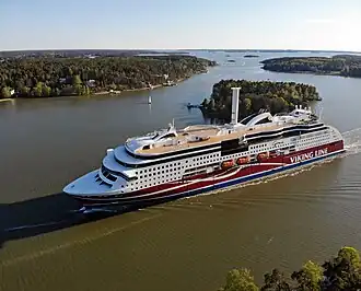 MS Viking Grace is a cruiseferry constructed at STX Europe Turku Shipyard, Finland for the Finland-based ferry company Viking Line. The ship was delivered to her owners on 10 January 2013, and entered service on 13 January 2013. She is the first large-scale passenger ferry to be powered by liquefied natural gas (LNG) as well as being fitted with a rotor sail.