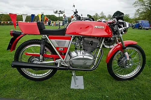 125 cc was a popular class in Italy, MV having produced four-stroke 125s since 1954,[5] including sports models such as the "125 Rapido Sport" model, produced from the second half of the 1950s,[6] and the "GTLS" of the early 1970s.[7]