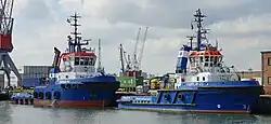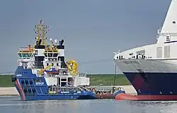 Dutch and German tugboats and fireboats were ordered to attend to the burning ship, as well as an oil-recovery vessel in case of a leak.[6] The ship was at a position north of the island of Terschelling, between two very busy shipping routes to and from Germany.[7] The salvage operation was led by the Netherlands Rijkswaterstaat, joined by the Netherlands Coastguard and contracted salvage companies, like Smit International, Multraship Towage and Salvage and Boskalis. The owner of Fremantle Highway contracted the Dutch heavylift company Royal Boskalis Westminster for the salvage operation.[8]