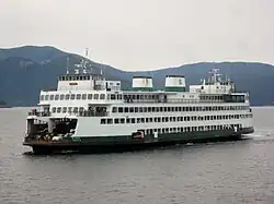Unlike her sisters, the Hyak did not have her cabin refurbished.[11] In June 2015, the Hyak was replaced by the MV Samish in the third sailing spot in the San Juans. It was moved to the Seattle–Bremerton route for the remainder of its life, but returned to the San Juan route several times to replace vessels undergoing maintenance.[12][13][14] The Hyak primarily served as a standby vessel for the rest of the fleet and was considered for experimental conversion to use hybrid diesel-electric generators until the plan was scrapped in 2015.[15] The retirement of the Hyak, originally anticipated for the arrival of MV Samish, was delayed into 2019 after MV Suquamish replaced it as a relief vessel.[16]