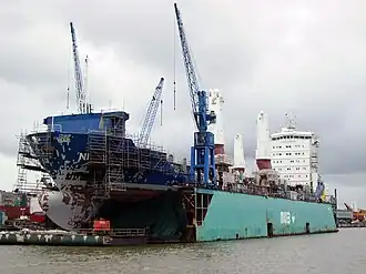 ![]() Nirint Atlas drydocked in 2007, prior to her conversion to a power ship