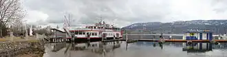 MV Lequime was a ferry that operated on Okanagan Lake in British Columbia, Canada. The most well-known of the long line of ferries on the lake, Lequime was built in 1947 and was later called Fintry Queen. Plans for the construction of Lequime began on May 1, 1946 and she was built in a fashion similar to the earlier MV Pendozi.[1] Lequime carried cars and freight between the communities of Kelowna and Westbank with two other boats, MV Lloyd-Jones and Pendozi. However, the three struggled to carry the increasing load prior to the opening of the Okanagan Lake Bridge in 1958.[2] After retirement, Lequime was renovated, a paddle wheel added to the stern, and used as a restaurant and for Okanagan Lake cruises.[3]