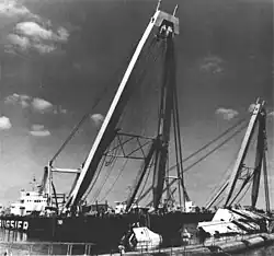 Her wreck was cleared by the salvage ships Roland and Thor in 1974 as part of the operation to reopen the canal.[2] Magd lay on her starboard side at a position 159.90 kilometres (99.36 mi) from Port Said. The wreck was cut in two by explosives on 6 November. The stern section was removed on 14 November and the bow section on 23 November. The work was carried out by the Murphy Pacific Marine Salvage Company under the direction of the Supervisor of Salvage, United States Navy.[6]