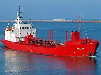 The Millennial Spirit is a 2,200-ton chemical tanker which is 77.12 m (253 ft 0 in) long, has a beam of 12.53 m (41 ft 1 in), and a draught of 4.6 m (15 ft 1 in). It was assessed at 1,665 gross tonnage (GT) and 2,200 tons deadweight (DWT).[1] It has a single deck and a crew of either 10 or 12.[2][3][4]