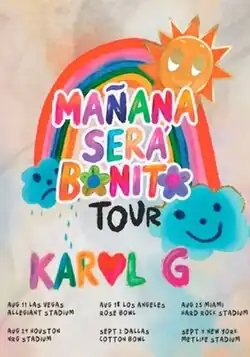 The Mañana Será Bonito Tour was the fourth concert tour by Colombian singer Karol G, launched in-support of her multi-platinum fourth studio album Mañana Será Bonito (2023) and its mixtape/B-side, Bichota Season (2023). The show's setlist also features additional hits and fan-favorite songs from her previous three albums Unstoppable (2017), Ocean (2019) and KG0516 (2021). The tour began on August 10, 2023, at Allegiant Stadium in Las Vegas, Nevada, before visiting additional cities throughout North America, much of Latin America and parts of Europe. The Mañana Será Bonito Tour ended on July 23, 2024, at Estadio Santiago Bernabéu in Madrid, Spain.