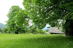 The local church, dedicated to Saint Anne, was built on the top of Hunter's Peak (Slovene: Lovski vrh, German: Annaberg 'Mount Saint Anne'[14]: 193 ) north of the settlement. It is also a site of a prehistoric Iron Age settlement. The pilgrimage church, a 16th-century building that survived the Second World War, was demolished in 1953 or 1954.[16] A chapel-shrine dedicated to Saint Anne was erected next to the site of the former church in 2003.[14]: 193