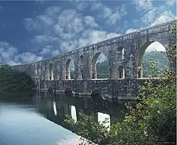 The Mağlova Aqueduct or Muallakkemer is an aqueduct built by Sinan the Architect between 1555 and 1562[1] on the Alibey Creek valley in Istanbul by order of Suleiman the Magnificent.[2] Today, it is located near Cebeci village in Sultangazi district.