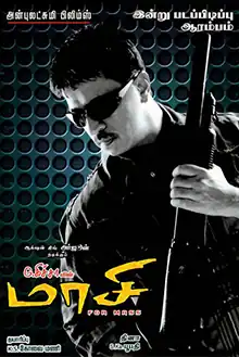 Arjun signed on to appear in Kicha's film titled Kallan in March 2009, which would see him play a police officer.[2] The title was later changed to Maasi[3] after the lead character and the film's launch was held on 1 April 2009 at a private club in the presence of the members of the cast and crew.[4] The film's audio launch was held on 26 May 2010 with actor Karthi and Hansraj Saxena of Sun Pictures releasing the disk in a grand scale function.[5] At a press conference, Kicha announced that two of his police films Bhavani and Maasi would see back to back releases in July 2010, though the deadline passed without further news.[6][7] The film was set to release in late August 2011 alongside Arjun's other film Mankatha, but ran into a legal tussle with the makers of Idhudhanda Police – 2. The team of that film claimed they bought the remake rights of the Hindi film, Risk and based their Idhudhanda Police – 2 on it. They appealed that Maasi had copied almost 75 per cent of the scenes from the Hindi film that they were remaking and obtained an order in Hyderabad City Civil Court to stay the release of the film, and subsequently caused a delay.[8] The film was further delayed in early 2012, when the director was arrested for failing to return an advance payment he had received from another producer, hence Tamil Kumaran sought a stay on the film.[9]