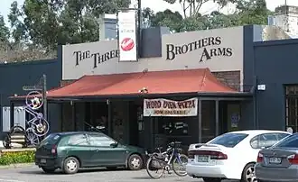 The first hotel, The Goat's Head Inn, was established in 1841.[6] It was later known as the Macclesfield Arms, Davenport Arms, and now Three Brothers' Arms after the three Davenport brothers. The brewery next door to the hotel was opened by 1851, but converted to a butter and cheese factory around 1903 and abandoned in favour of a new factory in 1937.[7]