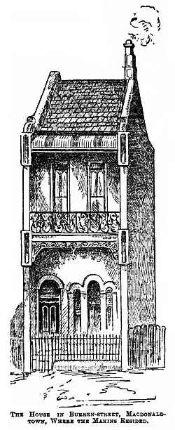 • John and Sarah Makin also known as the Hatpin Murderers were 'baby farmers' who in 1892 were convicted of murder after bodies of infants were found buried in the yard of their Macdonaldtown home[10]