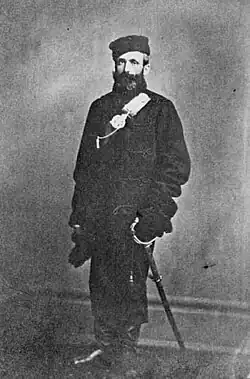 On March 23, 1866, he was promoted to Captain in command of No. 1 Company, 15th Battalion[2] and fought in the Fenian Raids of 1866, serving at Prescott and being awarded the Canada General Service Medal. He was promoted to Major in the 49th (Hastings) Battalion of Rifles on February 22, 1867, and qualified for the First Class Certificate at the Military School of Instruction on March 1. He was promoted to Brevet Lieutenant-Colonel on February 22, 1872, and retired from the militia on March 24, 1874, with the rank of lieutenant-colonel in that regiment.[3]