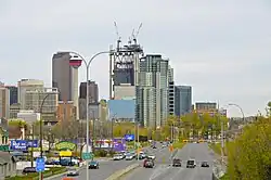 Macleod Trail effectively divides the southwest and the southeast quadrants of the city, and many communities (inner city as well as suburban) were developed along its course.[2] Macleod Trail (along with Crowchild Trail and Deerfoot Trail) constitutes one of the three major north-south corridors of the city.[3]