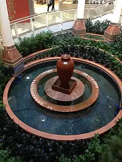 Macquarie Centre officially opened on 17 November 1981 by the Premier of New South Wales, Neville Wran. The centre featured an Olympic sized ice rink, Grace Bros (rebranded to Myer in 2004), Big W, Target, Woolworths and 130 speciality stores.[3] Macquarie Centre was the third centre in Sydney to facilitate an "incline mall" design (after Westfield Burwood and Westfield Hurstville) and was built on a spiral staircase around the sundial water fountain. This meant that it is a gently-ascending grade and that the levels were connected via a system of ramps, stairs and escalators.[4]