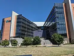 The university hosts a number of high-technology companies on its campus. Primarily designed to encourage interaction between the university and industry, commercialisation of its campus has also given the institution an additional revenue stream. Tenants are selected based on their potential to collaborate with the university's researches or their ability to provide opportunities for its students and graduates.[43] Cochlear has its headquarters in close proximity to the Australian Hearing Hub on the southern edge of campus. Other companies that have office space at the campus include Dow Corning, Goodman Fielder, Nortel, OPSM, and Siemens.[48]