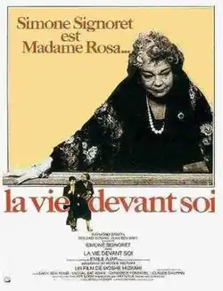 Madame Rosa (French: La vie devant soi) is a 1977 French drama film directed by Moshé Mizrahi, adapted from the 1975 novel The Life Before Us by Romain Gary. It stars Simone Signoret and Samy Ben-Youb, and tells the story of an elderly Jewish woman and former prostitute in Paris who cares for a number of children, including an adolescent Algerian boy. The film required a transformation in Signoret's appearance as Madame Rosa.
