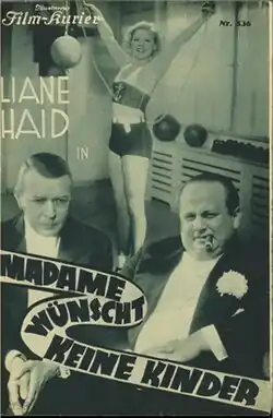 Madame Wants No Children (German: Madame wünscht keine Kinder) is a 1933 Austrian-German comedy film directed by Hans Steinhoff and starring Liane Haid, Georg Alexander and Lucie Mannheim.[1] It is a remake of the 1926 silent film Madame Wants No Children. It was shot at the Sievering Studios in Vienna. The film's sets were designed by the art directors Otto Erdmann, Hans Sohnle and Emil Stepanek.