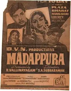 Madappura (pronounced [maːɖapːɯɾaː] transl. Balcony Pigeon) is a 1962 Indian Tamil-language film, directed by S. A. Subbaraman. The film stars M. G. Ramachandran and B. Saroja Devi. It was released on 16 February 1962.[2]