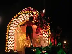 Madikeri Dasara (Kannada: ಮಡಿಕೇರಿ ದಸರ) is the Dasara festival is celebrated in the city of Madikeri in the Indian State of Karnataka. It has a history of over a hundred years. Madikeri Dasara is a ten-day celebration, which is beautified by 4 Karagas and 10 Mantapas depicting killing of Asuras (demons) by Suras (God/Goddess). Preparation for Madikeri dasara starts before 3 months. Most of the money for this celebration is collected from the people of Kodagu. Each of these 10 Mantapa committee has 50 to 100 members. A Mantapa comprises idols of height 8 to 15 feet, which is set up at the front of a lighting board. The cost of building a Mantapa will be ₹10 to 20 Lakhs.