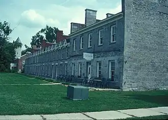 Madison Barracks was a military installation established in 1813[2] or 1815[3] at Sackets Harbor that was built for occupation by 600 U.S. troops, a few years after the War of 1812. It was named for James Madison who had just completed his presidency in 1817. Construction began under the name Fort Pike.[3] The facility is a National Historic Landmark and a historic district located in Jefferson County, New York. The district includes 86 contributing buildings and two contributing structures. It includes the stone hospital, bakery, several warehouses known as "Stone Row," a stone water tower, and a series of brick buildings constructed in the 1890s as officers quarters, barracks, mess hall, and weapons storage and repair building.[4]