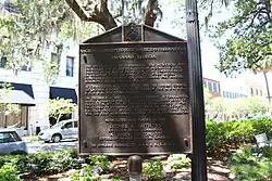 In the center of the square is the William Jasper Monument, an 1888 work by Alexander Doyle memorializing Sergeant William Jasper, a soldier in the siege of Savannah who, though mortally wounded, recovered his company's banner.[2] Savannahians sometimes refer to this as Jasper Square, in honor of Jasper's statue.[3]
