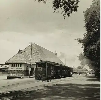 During the Japanese occupation and the subsequent Indonesian independence struggle, the tram suffered considerable damage. Most of the staff was interned by the Japanese during 1942, so by the end of 1942 nearly all European employees and their families were held in Japanese prisons or detention camps. The so-called Madoera Affair was the arrest in August 1942 and the execution in February 1944 of 62 executives of the Madurese salt extraction plants and the Madoera Stoomtram Maatschappij by the Japanese during the Japanese occupation of the Dutch East Indies.[5] In August 1942, a reported as "lost" freight car Madoera Stoomtram Maatschappij, which was loaded with ammunition intended for the Royal Dutch Indian Army, was found by a Japanese patrol. This car was found in the yard of Ngawi, Ngawi. Due to a leak, the Japanese military police Kempeitai obtained a list of names of the demolition command, which had seriously damaged important facilities on the island shortly before the occupation of the island. The Kempeitai also learned of a plan of the chemists from the salt extraction plants to make explosives by chemically processing salt. Therefore, the Japanese suspected that there were radio links with allies. Under suspicion of illegal anti-Japanese activities, the entire management of these companies was arrested and later executed. The arrested administrative staff remained interned.[6]