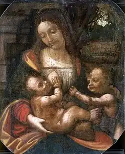 The Madonna of Laroque is an oil painting on a poplar board (48 cm / 59 cm), executed between 1502 and 1503.[1] It depicts the Virgin nursing the Christ Child with the infant John the Baptist. There has been speculation that the painting may be by Leonardo da Vinci.[2]