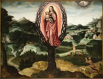 Madonna of the Dry Tree or Our Lady of the Barren Tree[1] is a small oil-on-oak panel painting dated c. 1462–1465, attributed to the Early Netherlandish painter Petrus Christus. Its dramatic imagery shows the Virgin Mary holding the Christ Child within a tree, surrounded by black, withered branches forming a crown of thorns. The panel is unsigned and undated. It was unattributed until 1919, when the art historian Grete Ring associated its iconography and painterly style with Christus and through a detailed examination of its imagery assigned its current title.