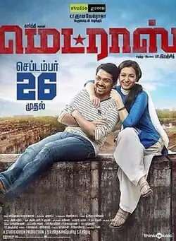 Madras is a 2014 Indian Tamil-language political action drama film written and directed by Pa. Ranjith. The film stars Karthi, Catherine Tresa (marking her debut in Tamil cinema) and Kalaiyarasan while Charles Vinoth, Riythvika, V. I. S. Jayapalan, Poster Nandakumar and Mime Gopi play supporting roles. Set in the backdrop of North Madras, Kaali (Karthi) and his friend Anbu (Kalaiyarasan), get embroiled in a brutal political rivalry, between two factions of a political party after laying claim to a wall.
