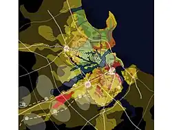 - The Urban layer (scale 1:5,000), which constituted the ‘fabric’ of the metropolitan system and was conformed according to an urban location model called the BUD (Balanced Urban Development - Unidad de Desarrollo Equilibrado)
