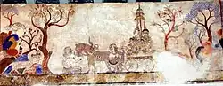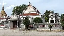Wall paintings inside are essentially the masterpiece, reflecting capability of local artists at that time. It depicted the tale of Vessantara, the king who gave up everything he owned to pave the way for achieving enlightenment. It was done at the same time of the construction of the building. Even though the paint was chipped and faded away over the period of over 150 years, it still retains great beauty, imagination, and wisdom of self-taught local artists.