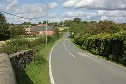 ![]() Road through Bettisfield, Maelor South, from bridge over the Llangollen Canal. | |