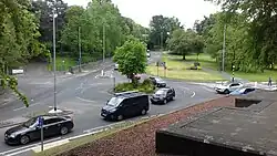 Mafeking Park is a public park in Morpeth, Northumberland, England, at the bottom of Station Bank. It was unsuccessfully put forward by locals to be listed as the smallest park in the world in the Guinness Book of Records.[1] The park was originally a triangle of land bounded by roads but after road improvements is now a small roundabout.[2][3][4] Recently, the area around the roundabout has been subject to improvements, including the installation of off- and on-road cycle routes.[5][6]
