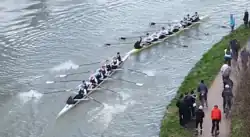 Magdalene is one of the smaller Cambridge University colleges, but has often put out strong crews. In the early history of the Lent and May Bumps, Magdalene 1st men's VIII were often found in the 2nd division, occasionally slipping into the 3rd. Since about the 1950s, the 1st VIII has largely been in the 1st division or top few crews of the 2nd division. The Magdalene men have never held a headship of either set of races, having reached a highest position of 2nd in the Lent Bumps in 2024 and 2nd in the May Bumps in 2019. Between 2014 and 2019, the men's May Bumps crew enjoyed its most successful period in the Club's history, having risen from the 2nd Division in 2014 up to 2nd on the river in 2019, its highest position ever.[1] In 2018, Magdalene's 4th men's VIII became the first men's crew to record a quadruple-overbump—moving up nine places in one race—at May Bumps (Peterhouse women's first VIII recorded the same feat in 1986).[2] On the first day of the May Bumps in 2019, the 1st men's VIII overbumped from 5th to 2nd on the river, which is the highest overbump in the history of Bumps in Cambridge.