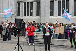 In April 2025, in the aftermath of the Supreme Court's judgement in the case of For Women Scotland Ltd v The Scottish Ministers, which stated that a woman is defined by biological sex under UK equality law, Chapman attended a transgender rights rally in Aberdeen where she was filmed condemning the ruling. Chapman denounced what she called "bigotry, prejudice and hatred coming from the Supreme Court". Chapman's comments were denounced by the Faculty of Advocates, which described them as failing to "respect the rule of law", and constituting "an egregious breach of Ms Chapman's duties to uphold the continued independence of the judiciary". In a letter to the Equalities, Human Rights and Civil Justice Committee - of which Chapman is deputy convener - Roddy Dunlop KC called her comments "outrageous" and said that they created a risk of danger to members of the Supreme Court, and called for an apology and for Chapman to consider her position. Chapman stood by her comments and refused to apologise, saying that institutions and laws reflect transphobia and prejudice in society.[47] On 29 April, a motion in the Committee to remove Chapman as deputy convener was rejected by four votes to three after SNP MSPs sided with Chapman. Two Conservatives and one Labour member voted in favour of removing her.[48]