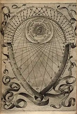 Magnes contained the first response by a Jesuit to the arguments of some heliocentrists who held that magnetism proved the Copernican model of the universe.[7] Kircher was aware that he was the first scholar to mount a critical assault on the heliocentric theory that the Church had condemned as heretical. He did not agree with Galileo and some other scientists of the time that the Earth rotated, so William Gilbert's view that the Earth's magnetic poles had something to do with that rotation was one he did not support.[3] In Kircher's view, the Earth's poles were not the axis of planetary rotation, but the axis around which the stars rotated in the heavenly spheres. Indeed, he argued in Magnes that the Earth stands still because its two magnetic poles are attracted by two celestial reverse poles.[8][7] Kircher also rejected Kepler's view that the Sun created a magnetic force that caused the planets to rotate around it.[4] He argued that the experimental proofs of magnetism were not sufficient to resolve the question of whether the Earth or the Sun was at the centre of the universe, and did not believe that the behaviour of magnets at a small scale on Earth was a useful guide to how the cosmos worked.[7][9]