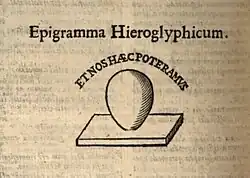 The final illustration in the book is of the egg of Columbus standing on its point on a slate and bearing the motto Et nos haec poteramus ("and we have been able to do likewise") - in other words, in producing this work, Kircher had, like Columbus, been able to do something thought to be impossible.[18]