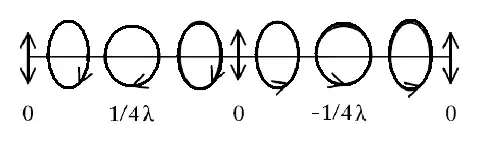The PEM will delay one component of linearly polarized light with a time dependence that advances the other component by 1/4 λ (hence, quarter-wave shift). The departing circularly polarized light oscillates between RCP and LCP in a sinusoidal time-dependence as depicted below: