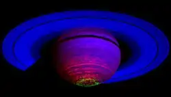 ![]() Aurorae on the south pole of Saturn as viewed by Hubble | |