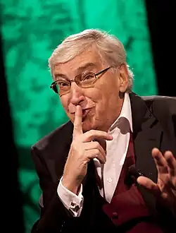 Johan Herbert Magnus Härenstam (19 June 1941 – 13 June 2015) was a Swedish television host, actor and comedian.[1][2] Härenstam hosted the Swedish version of the game-show Jeopardy![3] for 14 years before being replaced by Adam Alsing. Härenstam is also known for hosting the children's TV-program Fem myror är fler än fyra elefanter (with Brasse Brännström & Eva Remaeus), which was very popular and has been re-broadcast numerous times since it first aired. Härenstam participated in the music video for ABBA's hit song "When I Kissed the Teacher" where he played the teacher who got kissed by Agnetha Fältskog. Well known in Sweden for several decades, he was almost equally popular in Norway, having starred in the 1990s sitcom Fredrikssons fabrikk, playing the Swedish boss of a Norwegian textile workshop.