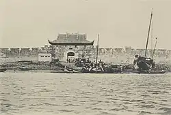 During the Qing rule, most fishing activities in the Magong area were concentrated around the site of today's Magong Commercial Harbor. After the completion of Magong Wall in 1889, the harbor area was divided into an “official pier” and a “commercial pier” (known as the Shuixian Temple Port).[1] Both were located in the Nanjiā area (南甲, South Jia) of Magong (historically called "Hái-thâu", literally meaning “seaward edge” in Taiwanese, corresponding to today's Fuxing Village in Magong City).[5][6]