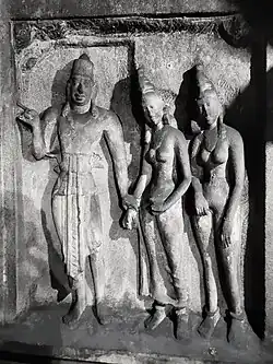 ![]() Sculpture of Mahendravarman I with his queens at Varaha Cave Temple. | |