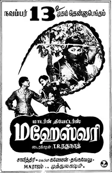 Maheswari is a 1955 Indian Tamil language film produced by Modern Theatres and directed by T. R. Raghunath. The film stars Gemini Ganesan and Savithri.[1] It was released on 13 November 1955.[2]