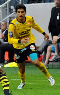 Özen playing for Mjällby AIF in 2013.