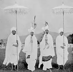 A Maiba or an Amaiba (literally, "priest"[1]) is a male religious leader authorised to perform the sacred rites and rituals of Sanamahism (Meitei religion),[1] especially as a mediatory agent between human beings and one or more deities. They have the authority or power to administer religious rites as well as sacrifices to gods. Their office or institution is called Maiba Loishang (Maiba Loisang), later renamed as Pandit Loisang, during Aryanisation of Meitei culture. They also served as healers, doctors,[2] magicians,[3] medicine men,[4] physicians and shamans.[1][5] They play important roles in the ancestor worship (apokpa khurumjaba) ceremony.[6] Chief priest or chief among the maibas is called Maichou, a term formed with the amalgamation of two words ("maiba"- priest, "achouba"- big, chief, great).[7] Since their position is not hereditary, they acquire their positions through talent and skills.[3] The female counterpart of a Maiba is a Maibi.