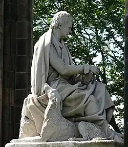 A statue of Scott at the Scott Monument in Edinburgh includes Maida gazing up at the seated figure.[7] William Allan painted "Sir Walter Scott with His Dog 'Maida'" in 1831.[8] Alexander Nasmyth painted the dog alone.[9]